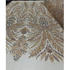 Tule Bordado Com Pedraria Super Luxo Gold HT97144