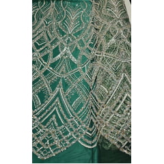 Tule Bordado com Pedrarias Premium Mônaco Verde Floresta Multicolor