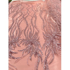 Tule Bordado com Pedrarias Premium Rosê Modelo HS3024